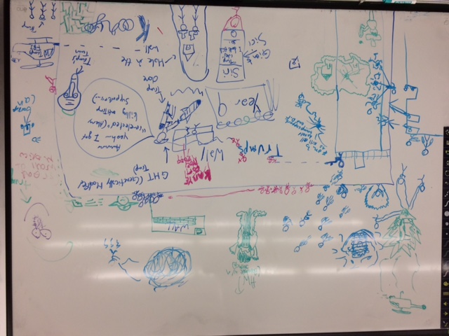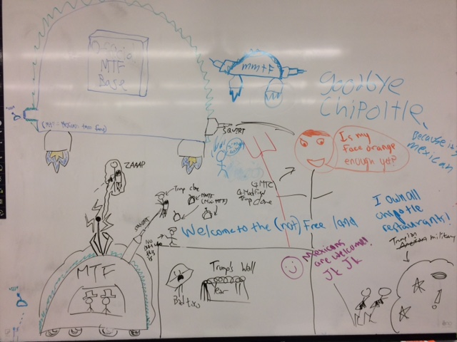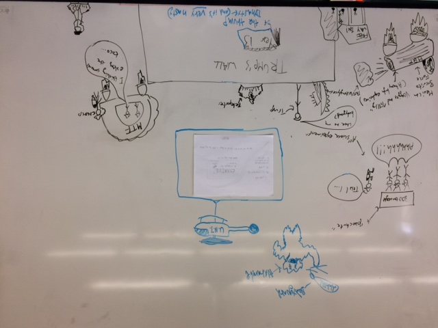 In seventh grade homeroom, a friend and and I thought it would be a great idea to draw "Trump's wall", with one year progressing on the whiteboard each school day as America moved into the Trump Dynasty. I took a photo of it (almost) every day. Below are those photos.