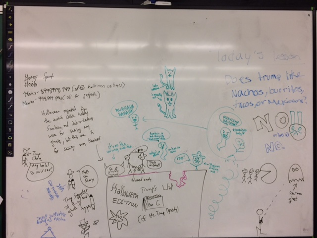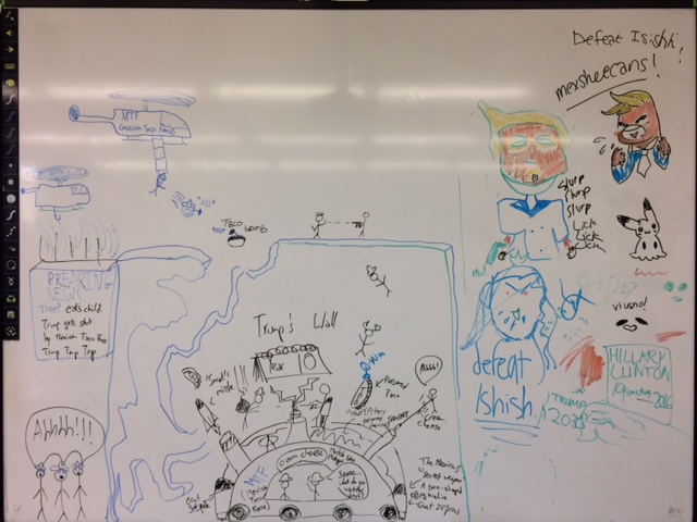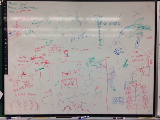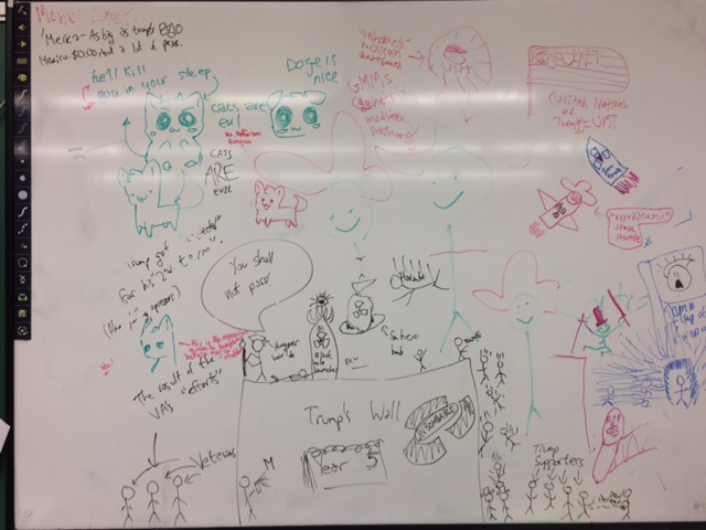 In seventh grade homeroom, a friend and and I thought it would be a great idea to draw "Trump's wall", with one year progressing on the whiteboard each school day as America moved into the Trump Dynasty. I took a photo of it (almost) every day. Below are those photos.